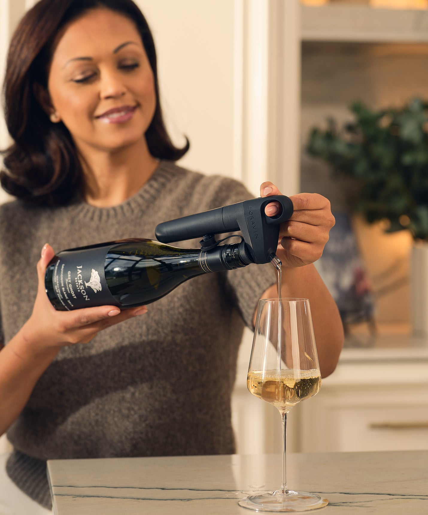 Pivot™エアレーターで注ぐ際は、ボタンを軽く短く押して穏やかなシャワーを維持してください。これにより、ワインの雫が空気に触れ、注ぐ際に急速にエアレーションされます。